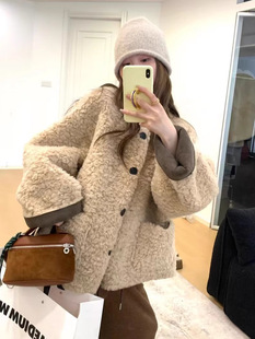 Reversible suede fur all-in-one jacket for early spring, thickened lambswool lapel top, fashionable and loose style