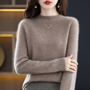 Wool blend 2024 Autumn and winter new women's first -line clothing semi -high -necked soft short versatile knitting bottom shirt
