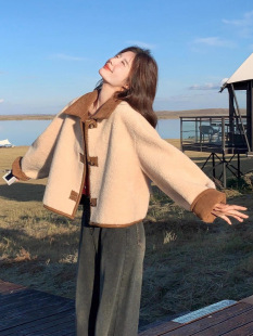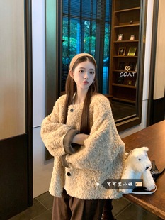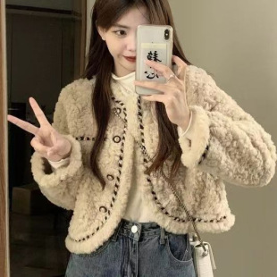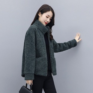 Lamb wool coat for women 2022 new winter loose small short lamb wool thickened small fragrance top