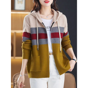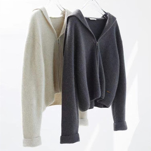 2024 new autumn and winter hooded zipper wool cardigan coat for women loose knitted sweater with short sweater