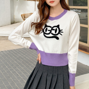 Spring and Autumn Retro Sweater Women's Japanese Knitted Bottoming Shirt Long Sleeve Loose Short Wool Top Cat Coat Clearance